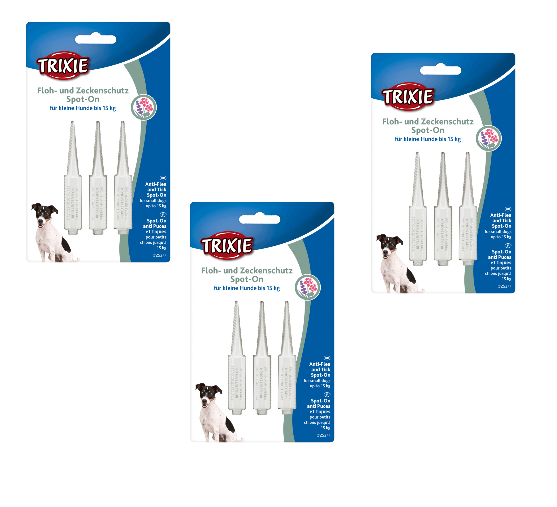 3 x TRIXIE Spot On Floh- und Zeckenschutz Flöhe Zecken Fliegen Milben bis 15 kg