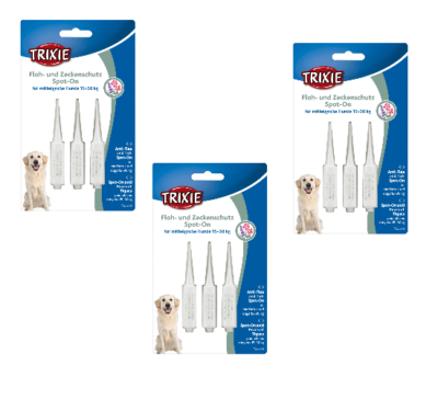 3 x TRIXIE Spot On Floh- und Zeckenschutz Flöhe, Zecken, Milben Hund 15-30 kg*