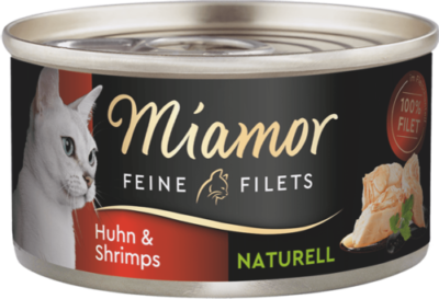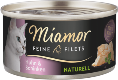 6 Stück Miamore Feine Filets Naturell Mix Paket 6 x 80 g Dosen Ausschließlich helle Filetstückchen vom Huhn im eigenen Saft, handverpackt mit hochwertigen Zutaten. Eine Filet- Spezialität auf höchstem Niveau - besonders leicht verdaulich, für die anspruchsvolle Katze. Auch für ältere und übergewichtige Katzen. Alle Informationen im Überblick ausschließlich helles Filet vom Huhn oder Tunfisch naturelle - nur im eigenen Saft gegart ohne Leber und Innereien, ohne tierische Nebenerzeugnisse ohne Farb- und Konvervierungsstoffe 80g- Dose Ergänzungsfuttermittel Ergänzungsfuttermittel für ausgewachsene Katzen Dose Huhn & Gemüse Nährwertangaben Rohprotein 15 %, Fettgehalt 1 %, Rohfaser 0,5 %, Rohasche 1,5 %, Feuchtegehalt 81 %, Kaloriengehalt / 100g: 75 kcal59% Hühner