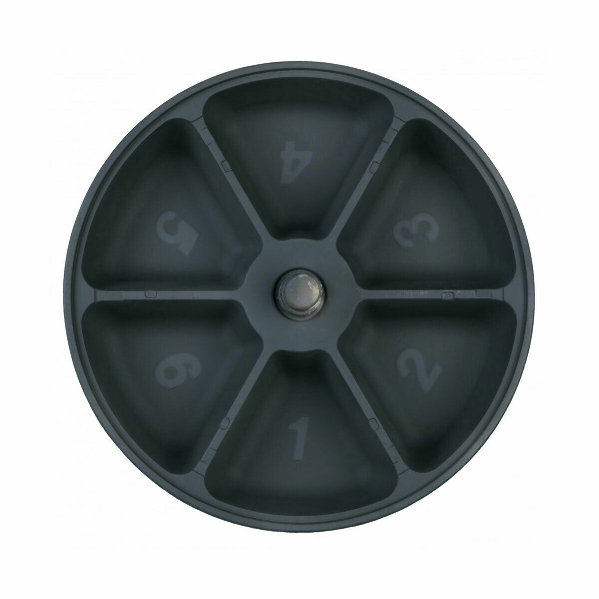 Futterautomat T X6 Kunststoff stabiler Deckel mit zusätzlicher Tasten- Abdeckung zum Schutz vor versehentlichem Verstellen durch das Tier Programmierung der Fütterungszeiten (bis zu 3 mal pro Tag) für 6 Portionen à 240 ml Futtermenge individuell je Mahlzeit festlegbar, bis zu 3 × 240 ml als eine Mahlzeit programmierbar auch für Nassfutter geeignet leicht zu reinigen mit Anzeige und Tonsignal bei sinkender Batterieleistung batteriebetrieben (4 C- Baby- Batterien nicht enthalten) Futterschale spülmaschinengeeignet Futterautomat T X6 Maße: 6 × 240 ml/ø 32 cm × 10 cm Jederzeit gut versorgt: mit den T R I X I E Futter- und Wasserspendern sowie Futterautomaten für Hunde ist das kein Problem. Batteriebetrieben mit Timer oder für mehrere Fütterungen programmierbar sorgen sie