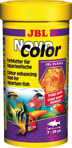 J B L Novo Color 100ml, Farbfutter für Aquarienfische, Flockenfutter Farbfutter für Aquarienfische Flockenfutter für Aquarienfische von 3 bis 20 cm Größe. Ausgesuchte Rohstoffe mit wertvollen Carotinoiden und Omega 3 fördern die Farbenpracht. Trübt das Wasser nicht. Ohne Fischmehl. Kräftiges und gesundes Wachstum mit wenig Wasserbelastung durch natürlich ausgewogenes Protein- Fettverhältnis. Dermatologisch auf Hautverträglichkeit getestet. Produkttyp Alleinfuttermittel Analytische Bestandteile Protein 43.00 % Rohfett 8.50 % Rohfaser 1.90 % Rohasche 9.00 % Feuchtegehalt 8.00 % Zusatzstoffe Farbstoffe Lebensmittelfarbstoff Astaxanthin E161j Lebensmittelfarbstoff rot E124 Lebensmittelfarbstoff Eisenoxid rot E172 Lebensmittelfarbstoff Indigotin blau E132 Antioxydantien E 306 ( Natürliche Vitamin E- Extrakte) Vitamin