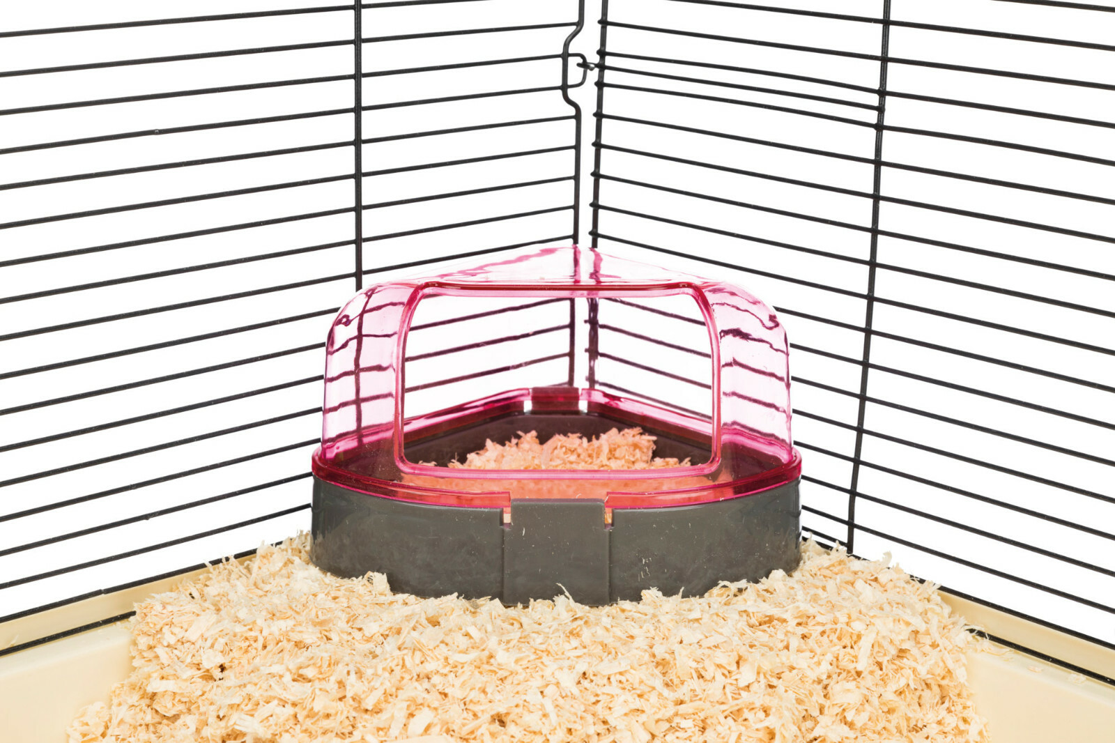 Ecktoilette mit Dach mit Streulöffel diverse Farben Kunststoff 6256 Ecktoilette mit Dach Maße: 14 × 8 × 11/11 cmfür z. B.: Mäuse, Hamster Farbe: diverse