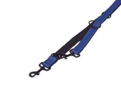 Zur Grundausstattung fuer einen Hund gehoert eine robuste, alltagstaugliche Leine. Auch bei schlechtem Wetter muss sie zuverlaessig ihren Dienst erweisen und Hund und Halter miteinander verbinden. Diese dreifach verstellbare Leine ist durch die Neoprenfuetterung besonders komfortabel. Die eingewebten Reflektorstreifen sind gut sichtbar und unterstuetzen ein sicheres Gefuehl beim Ausgang in der Daemmerung und bei Nacht. Sie ist in verschiedenen Farben erhaeltlich, wobei alle schwarz unterlegt sind (schwarz ist grau unterlegt). Die Metallteile der Fuehrleine sind ebenfalls schwarz.