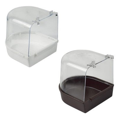 Ein Badehaus stellt eine sinnvolle Ergänzung zu einem Vogelkäfig dar. Es kann entweder dauerhaft oder nur zwischendurch zur Verfügung gestellt werden. In jedem Fall sollte das Wasser täglich gewechselt werden. Diese Ausführung ist für den Einsatz in einer Gittertür geeignet.