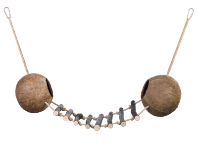 Dieses Aktivspielzeug ist aus zwei Kokosnuessen mit oeffnung, Sisalseilen und Holzsprossen gefertigt und sowohl fuer Voegel als auch fuer Nager geeignet. Das Spielzeug ist 90 cm lang. Die natuerliche Neugier Ihres Tieres verlangt nach Abwechslung und spannendem Kaefigzubehoer. Das Aktivspielzeug wird aus natuerlichen Rohstoffen hergestellt und laesst sich einfach in den Kaefig anbringen.