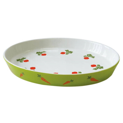 Diese dekorative Keramik Schale fuer Nager passt mit seinen aufgedruckten Moehren und Radieschen garantiert in jedes Nagerheim.