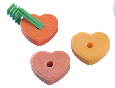 Dieser Salzleckstein ist in einer Herzform gestaltet und wird im 3er Pack mit Halterung geliefert.
