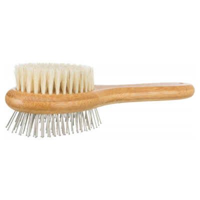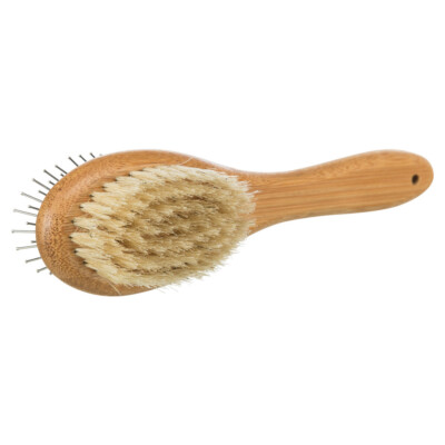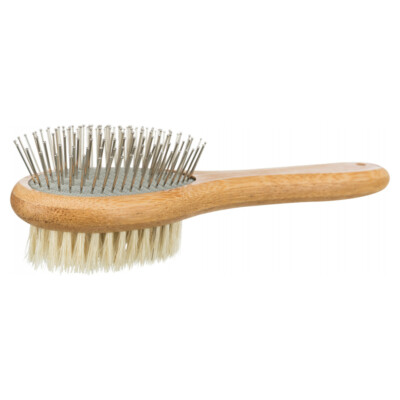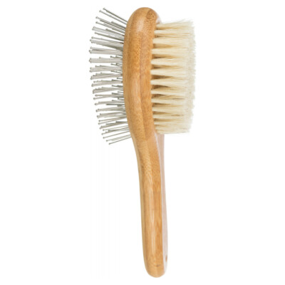 Bürste, beidseitig für Katzen Naturborsten und Metallborsten mit Noppen Bambus 5 x 19 cm / Felltyp: 2/3/4, Art. Nr. 6 x 22 cm / Felltyp: 2/3/4, Art. Nr. Bürsten, kämmen, striegeln oder auch mal waschen - Für ein schönes Katzenfell gibt es verschiedenste Produkte. Vom Katzenshampoo über Kämme, Bürsten, Striegel, Fellentfilzer oder Fellpflege- Handschuhe. Je nach Felltyp und Vorlieben von Katze und Katzenbesitzer kann das Fell so zum strahlen und glänzen gebracht werden. Und muss das Fell mal geschnitten werden, finden Sie bei Trixie passende Scheren und Schermaschinen.