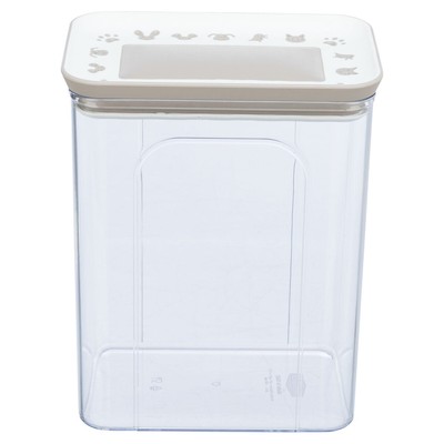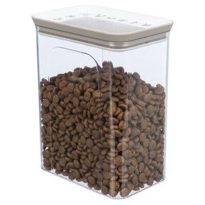 Produktbeschreibung luftdicht verschließbar hält das Futter frisch und schützt vor Feuchtigkeit Kunststoff Behälter spülmaschinengeeignet Fassungsvermögen: 2,2 l Maße: 15 x 14 x 19 cm Farbe: transparent/weiß
