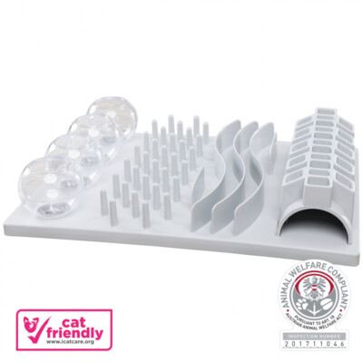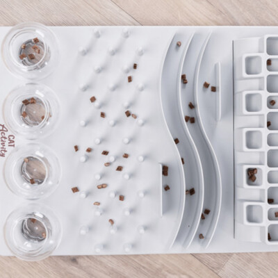 Cat Activity Fun Board abwechslungsreiches Brettspiel mit 5 unterschiedlichen Spielmodulen entwickelt von der Katzenexpertin Frau Dbalý körperliche Beschäftigung und geistige Herausforderung schult die Geschicklichkeit für Katzen ab 3 Monate Kunststoff rutschfest durch Gummifüße auch für ältere oder kranke Tiere geeignet inkl. Anleitung mit Tipps und Tricks für das optimale Training Spülmaschinengeeignet Maße: 30 x 40 cm Farbe: weiß Viele Katzen wollen nicht nur körperlich beschäftigt werden, sondern brauchen auch geistige Auslastung. Hierfür eignen sich unsere Cat Activity Strategiespielzeuge besonders gut. Mit diesen Katzenspielzeugen ist die Katze gefordert sich ihre Belohnung selbst zu erarbeiten und kleine Aufgaben zu lösen um mithi