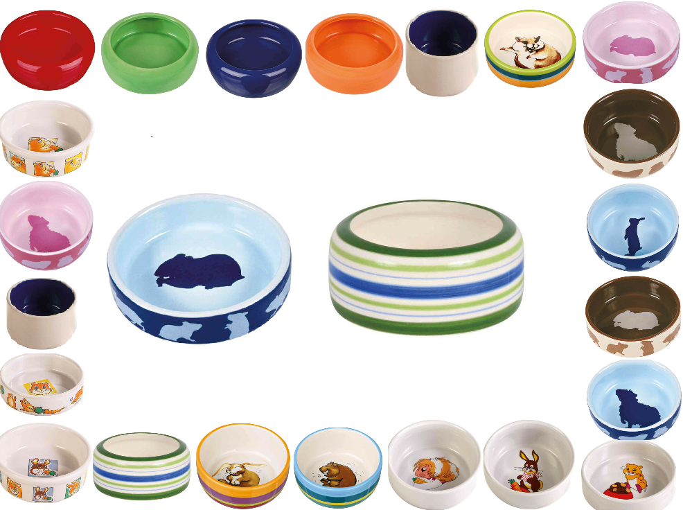 Keramiknapf Farbe: bunt/creme spülmaschinengeeignet 60801 Maße: 80 ml/ø 8 cm Farbe: bunt/cremefür: Hamster 60802 Maße: 250 ml/ø 11 cm Farbe: bunt/cremefür: Meerschweinchen 60803 Maße: 250 ml/ø 11 cm Farbe: bunt/cremefür: Kaninchen Keramiknapf 6066 Farbe: creme/blau spülmaschinengeeignet Keramiknapf Maße: 100 ml/ø 7 cmfür z. B.: Hamster, Mäuse Farbe: creme/blau Keramiknapf gewölbter Rand verhindert Auswerfen des Futters diverse Farben spülmaschinengeeignet 60741 Maße: 100 ml/ø 9 cmfür z. B.: Hamster, Mäuse Farbe: diverse 60742 Maße: 200 ml/ø 10 cmfür z. B.: Meerschweinchen Farbe: diverse 60743 Maße: 400 ml/ø 13 cmfür z. B.: Kaninchen