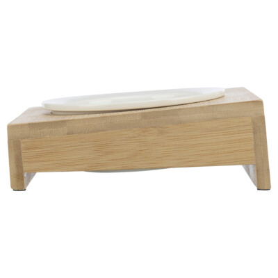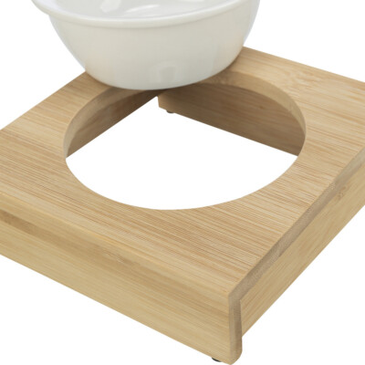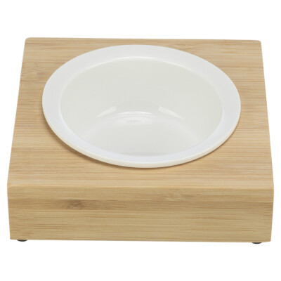 Keramiknapf Artikelnr.: 24538 Napf mit Halter Napfhalter aus Bambusgeräuscharmrutschfest durch Silikonpunkte Maße: 0,25 l/ø 12 cm/15 × 5 × 15 cm