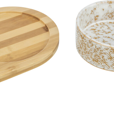 Trixie Napf-Set, Keramik/Bambus weiß-hellbraun/hellbraun Hund Dog Futterbar