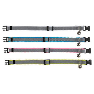 Safer Life Katzenhalsband, reflektierend Für alle Katzen Stufenlos verstellbares Gurtband Mit Schelle Sicherheits- Schnellverschluss: öffnet sich bei starkem Zug Reflektierend Diverse Farben Farbauswahl erfolgt unsererseits Die Halsbänder für Katzen gibt es in verschiedenen Varianten, Größen und Farben, mit oder ohne Schelle. Alle Halsbänder sind verstellbar und mit einem Verschluss ausgestattet, der sich schnell und einfach öffnet, sollte die Katze irgendwo hängen bleiben. Es gibt reflektierende oder leuchtende Katzenhalsbänder, die die Tiere in der Dunkelheit sichtbar machen. So werden Unfälle vermieden und die Katzen geschützt. Adressanhänger am Katzenhalsband helfen den richtigen Besitzer ausfindig zu machen.