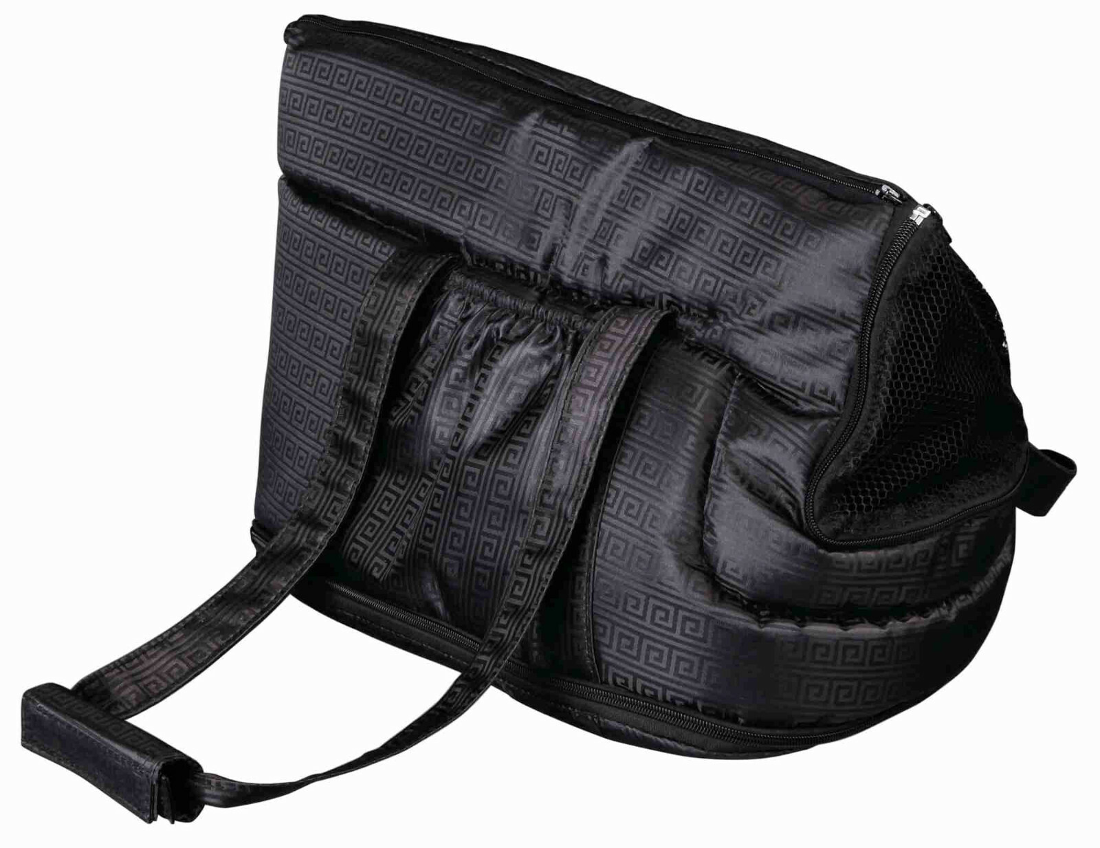 Tasche Riva gepolstert Netz- Einsatz mit Reißverschluss in der Front von oben zu öffnen mit Außentasche mit integrierter Kurzleine Bezug innen: Fleece Jacquard ( Polyester) Maße: 26 × 30 × 45 cmbis zu: 7 kg silber oder schwarz