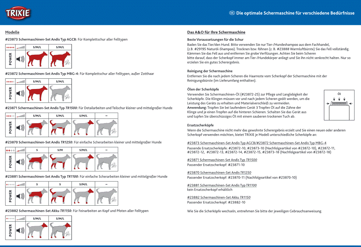 Akku- Schermaschinen- Set T R1150 (23882) für Feinarbeiten an Kopf und Pfoten laufruhiger Motor besonders für sensible Tiere geeignet mit 2 Doppel- Aufsteckkämmen, Reinigungsbürste und Öl Schnittlängenverstellung 1,0–1,9 mm Edelstahl- Scherkopf mit Kunststoff 2 Jahre Garantie Akku- Schermaschinen- Set T R1150 Leistung: 6 W Batterietyp: N I- C D Power: + Schermaschinen-Öl für alle Schermaschinen geeignet Schermaschinen-Öl Inhalt: 120 ml