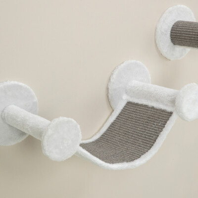 Wand- Set Artikelnr.: 49932 Für Kletterlandschaften geeignet Sisal/ Plüsch ( Polyester): 280 g/m²erweitert den Lebensraum der Katze um höher gelegene Bereiche Set beinhaltet: Liegemulde (78 x 30 x 30 cm) mit Kissen ( Handwäsche), 2 Stufen (ø 18 × 22 cm), Hängematte (78 x 20 x 29 cm) Farbe: weiß/grau