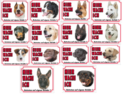 Warnschilder bedruckt verschiedene Hunde-Rassen